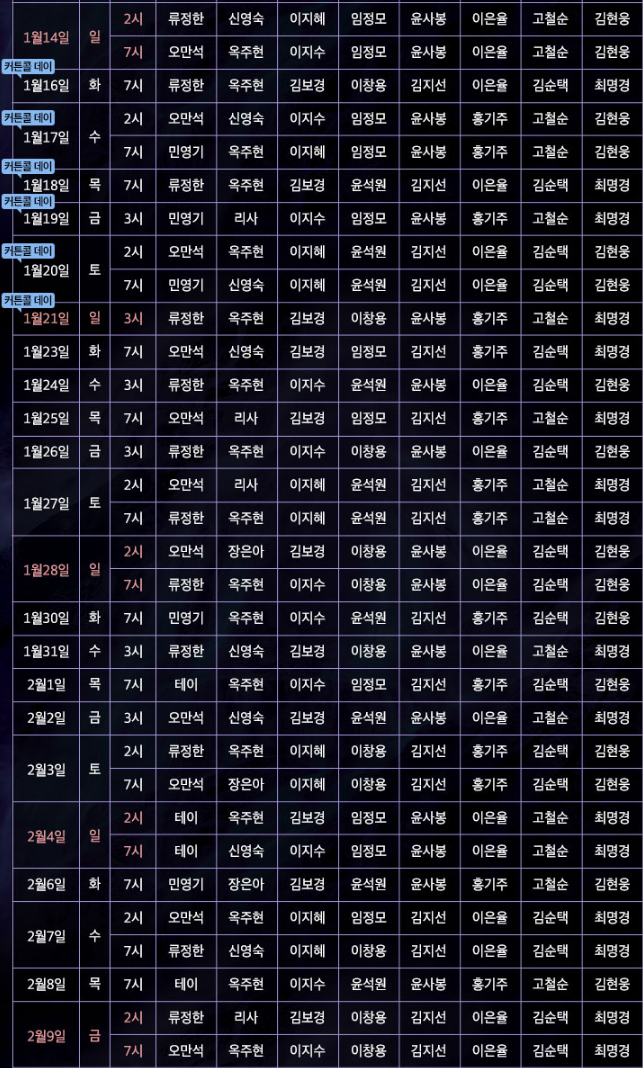캐스팅 스케줄
