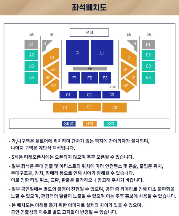 | 가격 | • SR석 : 154,000원 • R석 : 132,000원 • S석 : 110,000원 |