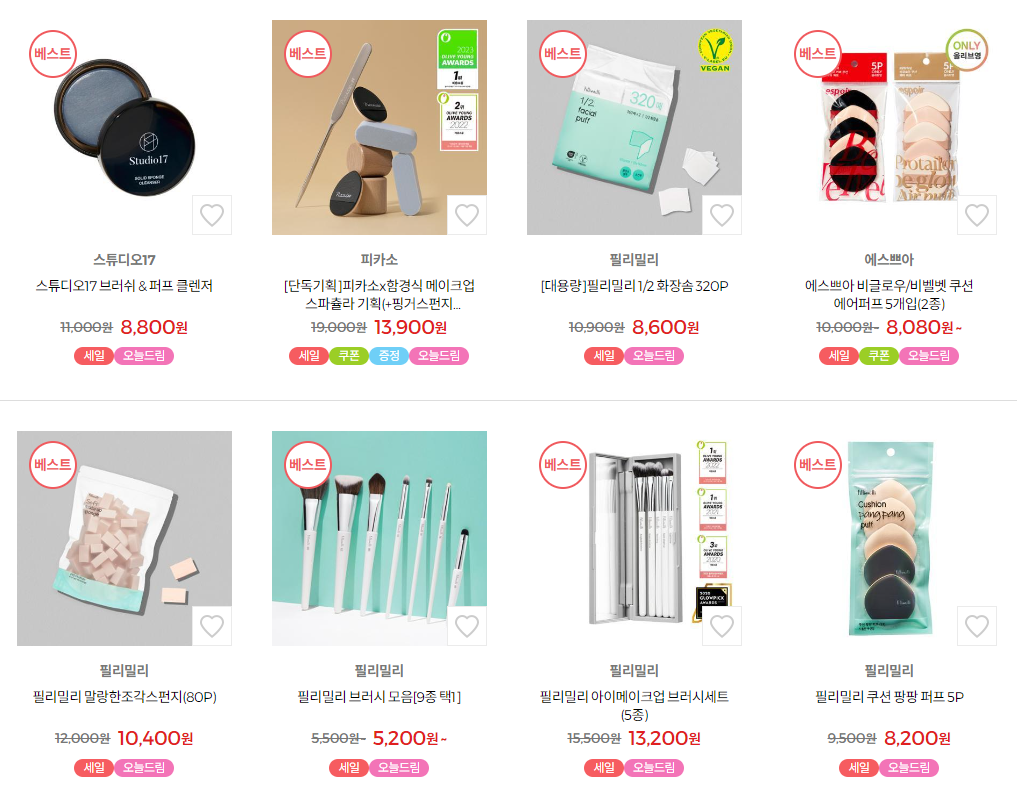 - 24년 3월 18일 기준이며, 미용소품 인기순으로 검색한 결과입니다.