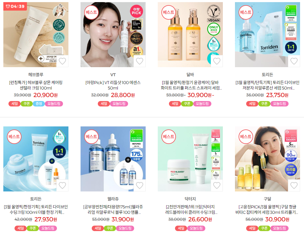 - 24년 3월 18일 기준이며, 스킨케어 인기순으로 검색한 결과입니다.