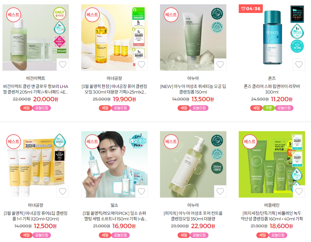 - 24년 3월 18일 기준이며, 클렌징 인기순으로 검색한 결과입니다.