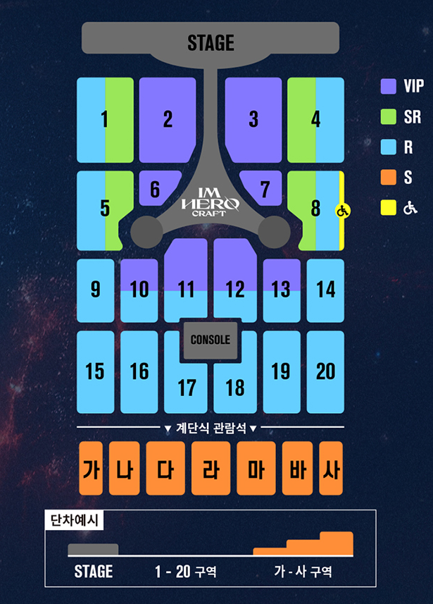 • 본 공연은 전석 지정좌석제로 가~사 구역은 단차가 있는 계단식 좌석이 설치되며, 나머지 구역은 단차가 없는 평지에 의자가 설치됩니다.