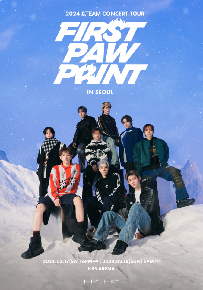'하이브 글로벌 그룹' 앤팀이 2024 &TEAM CONCERT TOUR 'FIRST PAW PRINT' IN SEOUL 첫 단독 콘서트 개최를 안내드립니다. 한국에서 열리는 첫 단독 콘서트 2024 &TEAM CONCERT TOUR 'FIRST PAW PRINT' IN SEOUL 은 여러분들을 좀 더 가까이 만나서 의미있도록 다양한 무대를 준비하고 있습니다.