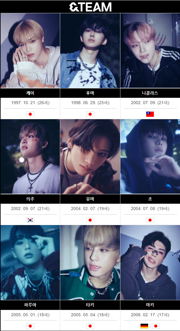 2022년 12월 7일에 HYBE LABELS JAPAN 소속으로 데뷔한 일본 현지화 9인조 K-POP 다국적 보이그룹입니다. I-LAND 참가자였던 기존 데뷔조 4명과 &AUDITION-The Howling에서 뽑힌 5명이 선발되었습니다.