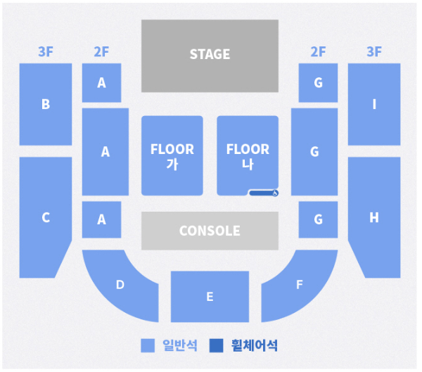 - 본 공연은 전석 지정좌석제로 플로어층은 단차가 없는 평지에 의자가 설치되며, 그 외 구역은 계단식 좌석입니다.