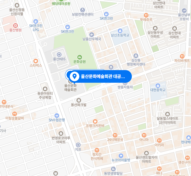 - 장소 : 울산문화예술회관 대공연장 (아래 이미지 클릭시 네이버 지도 연결됩니다.)